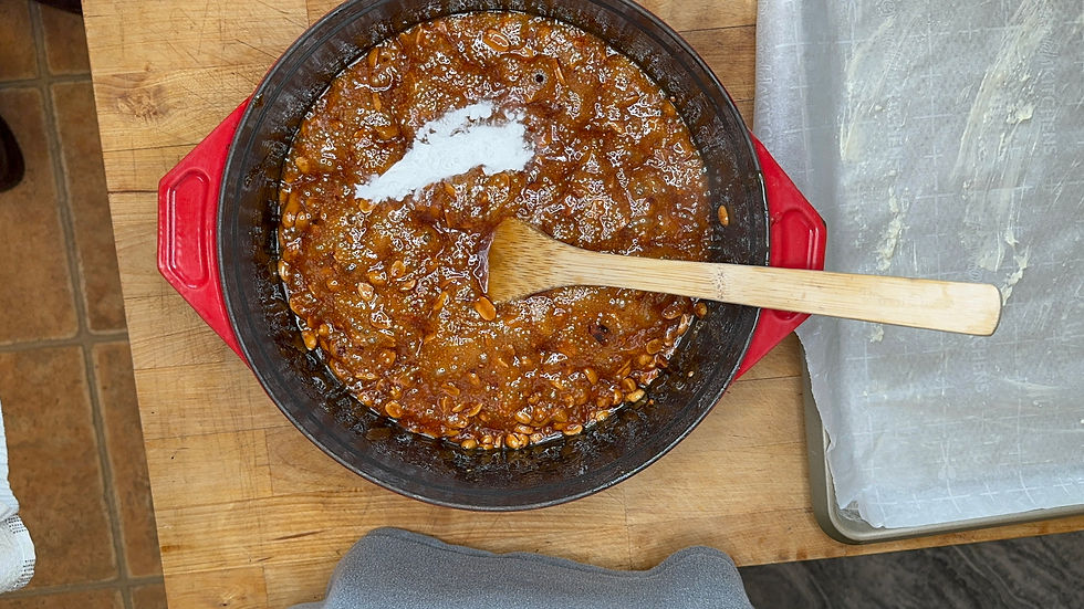 There is a very fun chemical reaction once you add the baking soda. I am not exactly sure why, but it changes the texture and the color of the brittle.