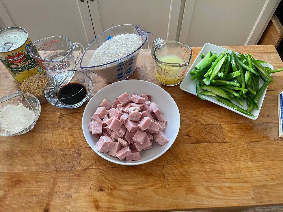 Imagine my surprise - when you serve the ham, vegetables, and sauce with the rice everything gets tones down.