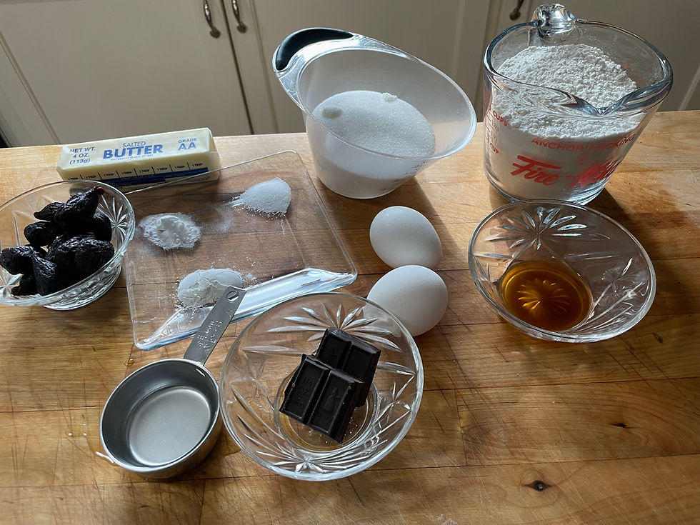 Coarsely chop figs and set aside. Cream butter and sugar. Add eggs and mix well. Beat in vanilla and water. Sift together dry ingredients and add to mixture. Stir in melted chocolate, nuts and chopped figs. Pour mixture into a greased loaf pan. Bake in a 350 degree oven for 1 hour. Cool slightly before removing from pan.