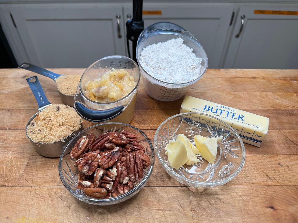 The butterscotch is made by placing the melted butter and brown sugar in the muffin tins. I would have like for it to have melted a touch more, maybe a few more minutes cooking time. . .